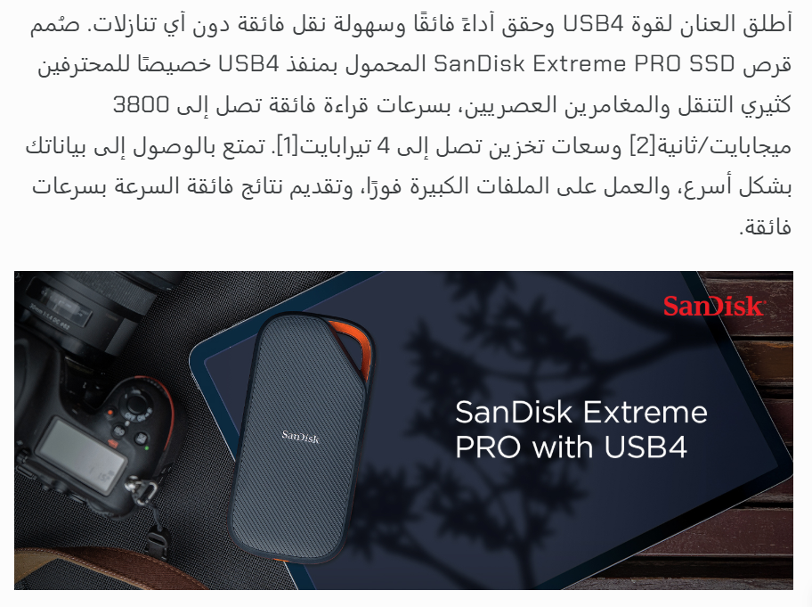 قبل نصف ساعة يتميز محرك الأقراص الصلبة المحمول SanDisk Extreme PRO بواجهة USB 4.0، وسرعات قراءة تصل إلى 3800 ميجابايت/ثانية وسرعات كتابة تصل إلى 3700 ميجابايت/ثانية، وتوافق مع الإصدارات السابقة من واجهات USB 3.2 و - محرك أقراص الحالة الصلبة المحمول SanDisk Extreme - سعة 2 تيرابايت (أسود)